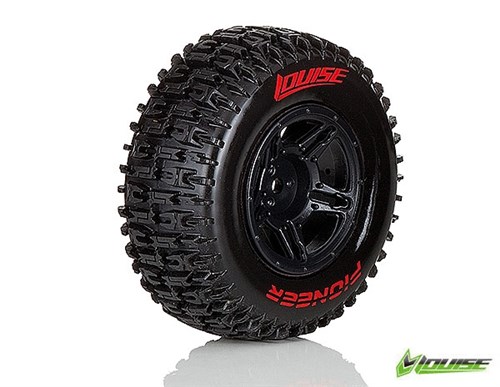 Louise Tire & Wheel SC-Pioneer, færdigt limet dæk på hjul i størrelse 2,2 / 3 ". Det tværgående mønster giver godt greb på de fleste overflader.