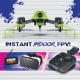 Includes100% Ready-to-Fly Vusion House Racer Indoor FPV Drone600TVL FPV video camera25mW 40-channel, 5-band Raceband 5.8GHz video transmitter lets you fly around your house or backyard against many friends.Tactic FPV-RM2 40-channel 5.8GHz FPV monitor with 4.3" LCD and external antenna (TACZ5152)Tactic FPV-G1 goggles (TACZ5200)RISE J2000 2.4GHz 6-channel radio system with Auto-Flip button and monitor holder(3) Flight modes: two gyro-assisted Stability Modes for beginners and Rate Mode for more advanced maneuvers1S 3.7V 650mAh LiPo battery delivers 6-8 minutes of flight timeUSB charger(4) "AA" alkaline batteriesExtra bladesWall guardsScrewdriverInstruction manualSpecifications Spare parts Accessories Downloads