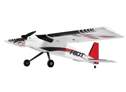 Riot er en perfekt allrounder. Med reduceret ror er den stabil og nem at flyve for begyndere. Hvis du øger påvirkningen, bliver det spændende for de mest ambitiøse akrobatiske piloter. Flyet er bygget i EPO-materiale, der er både let og solidt. Vinger og flykroge er dekoreret med store kontraster, så modellen er let at se i luften, selv på afstand.