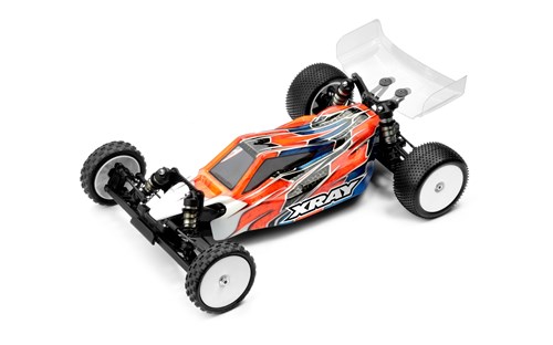 2020-modellen af XB2C, her i tæppebrugsudgaven. Konkurrence buggy i 1/10 skala med baghjulstræk, specielt designet til tæpper. Nyt til 2020-modellen er en ny chasis med bøjede sider for ekstra stabilitet og en 3-lags frigørelsespude for bedre bremsning.
