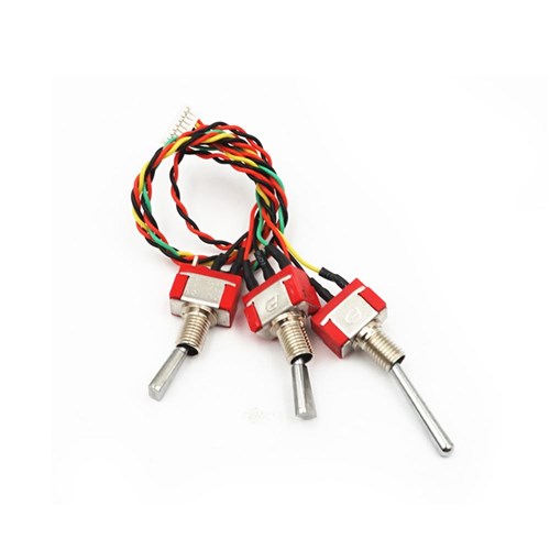 FrSky X9 Lite 3-position momentory switch. 3 kontakter tilsluttet den samme switch, 1 2-switch, 2 3-switch (1 lang / 1 kort).