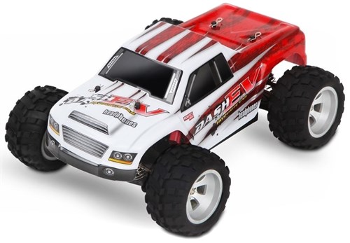 Monster truck i 1/18 skala med 540 motor, dette giver meget kraft i lille bil, og tophastighed er angivet til hele 70 km / t. Dette er ikke for begyndere! Monster A979-B har 4WD og leveres komplet med genopladeligt LiPo-batteri og 2,4 G rattradio. Bilen er 25,3 cm lang og har hårde crunch-dæk og sej indretning på omslaget. Den leveres med en oplader, så det eneste, der kræves derudover her, er 4 stk AA-batterier til radioen.