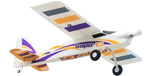 FMS Super EZ med et vingefang på over 1,2m. De medfølgende flydere monteres nemt, og gør modellen klar til brug på vand. Modellen leveres som RTF og med alt hvad der skal til for at kunne flyve, bortset fra 4 AA batterier til radio. Montagetiden er estimeret til omkring 15 minutter.