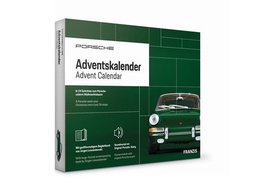 Adventskalender med konstruktionssæt af en Porsche 911 1965 -model i 1/43 skala. 24 luger, der gør ventetiden til juleaften hurtigere end en 911 Turbo S bruger på 0-100!