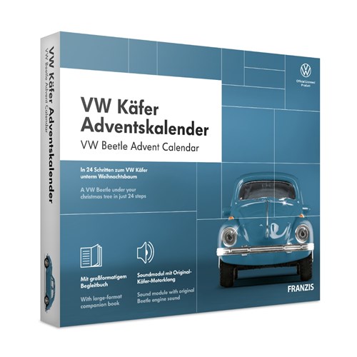 Adventskalender med byggesæt af den klassiske 1970 Beetle som model i 1/43 skala. 24 luger, der gør ventetiden til jul til en leg for VW -entusiasten!