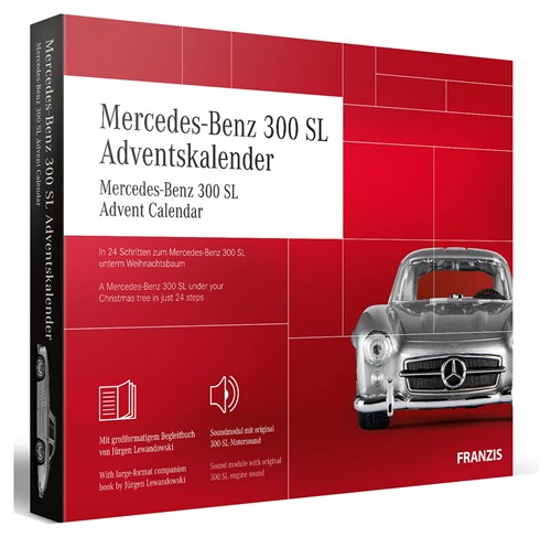 Adventskalender med konstruktionssæt af Mercedes 300 SL Gullwing i 1/43 skala. 24 luger, der gør ventetiden til jul til en leg for Mercedes -entusiasten!