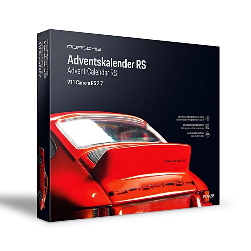 Adventskalender med konstruktionssæt af en Porsche Carrera RS 2.7 model i 1/24 skala. 24 luger, der gør ventetiden til jul til en leg for Porsche -entusiasten. Porsche Carrera RS 2.7 er et ikon blandt 911erne, og denne kalender adskiller sig fra de fleste andre Franzis -sæt ved at konstruktionssættet er 1/24 skala.