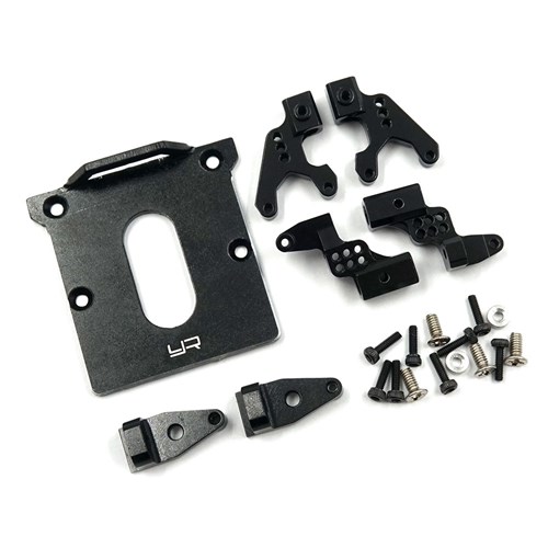 Justerbare for- og bagspjældbeslag i aluminium til Axial SCX24. Også inkluderet med ESC monteringsbeslag i aluminium for at afstive resten af kabinettet samt monteringstilbehør.