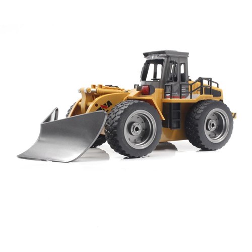 Hjullæsser fra HuiNa med sneskovl i skala 1:18. Modellen har funktioner til at bevæge sig: frem / tilbage, drej til venstre / højre og bevæg skuffearmen op og ned. Hjullæsseren har også lys og simulerer lyden af en rigtig hjullæsser.