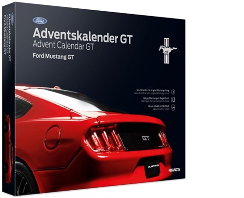 Adventskalender med konstruktionssæt af en Ford Mustang GT i 1/24 skala. 24 luger, der gør ventetiden til jul til en leg for Ford -entusiasten. Ford Mustang GT er et ægte amerikansk ikon, og denne kalender adskiller sig fra de fleste andre Franzis -sæt ved, at sættet er 1/24 skala.