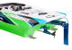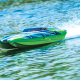 Båden er fuldstændig færdig i eska med ror og propel allerede monteret, mærkater er tændt og radioen er klar til handling! Med 2 x 2s LiPo -batterier har båden en tophastighed på cirka 60 km/t, men hvis du skifter til 2 x 3S LiPo, vil topfarten være hele 80 km/t!