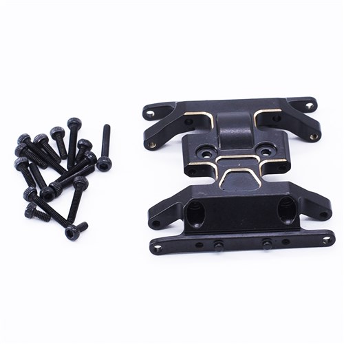 HobbyDetails Messing Mid Gearbox Skid Plate SCX24 vejer 13,8 kg og leveres med en sort og guld finish inklusive fastgørelsesskruer.