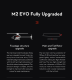 Denne Evo-version kommer med et endnu mere præcist rotorhoved, mulighed for hurtigere batteriinstallation, opgraderet skrogstruktur og blade, som giver dig mere flex, mindre støj og er nemmere at udskifte.