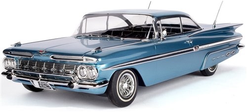 Officially licensed and highly detailed 1959 Chevrolet Impala bodyScale 14 inch spoked wheelsDetailed chrome injection molded trimLED light kit ready