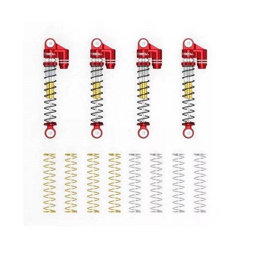 Treal 43 mm Double Barrel Shocks Red SCX24 for at hæve din bil. Leveres færdigmonteret og med flere fjedre til at justere blødheden. Med disse får du også mere flex i din bil.