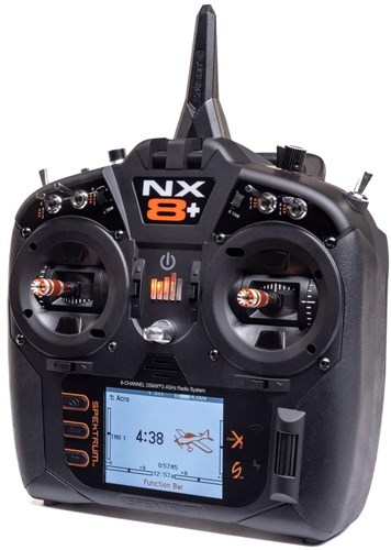 Spektrum NX8 er en 20-kanals DSMX-radio, der for første gang er udstyret med Spektrums Smart-teknologi. Dette giver dig fordele inden for telemetri, samtidig med at den tilbyder forbindelser som aldrig før. Radioen har blandt andet WiFi, en stor 3,2" farveskærm og et 2200mAh Li-Ion-batteri med integreret oplader. Derudover har NX8+ AS3X-videreprogrammering og Safe.