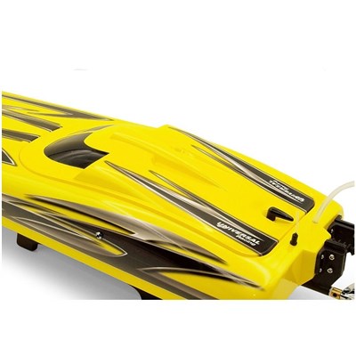 V4-versionen af Bullet kommer med et helt råt farveskema! 3-bladet metalpropel og opgraderet rorholder i metal med redningsplastik som gør båden nemmere at redde, hvis man vælter. Kuglen kører med 60 km/t+ angivet af producenten. Båden leveres med 2