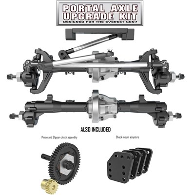 (RER13366 erstatter RER11289) Ferdigmonterte portalaksler til Everest Gen7 med diverse hardware og monteringsdeler man trenger. Aksler både foran og bak, følger også med en ny type klutsj med giring slik at man kommer utenom fartsreduksjonen på ca.