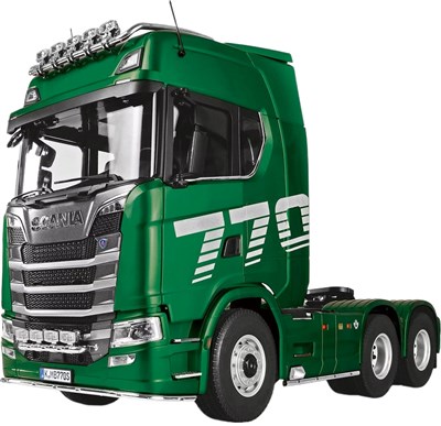 HuiNa Lastbil Scania K770S-100 6x6 - Rød Smuk Scania 770S lastbil i skala 1:14 med adskillige metaldele. Lastbilen leveres med en 2-trins gearkasse, difflock-simulerede lys- og lydeffekter samt døre, der kan åbnes og lukkes. Scaniaen vejer hele 4,8 kg og føles som et rigtigt premiumprodukt