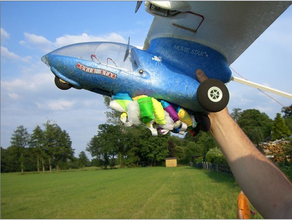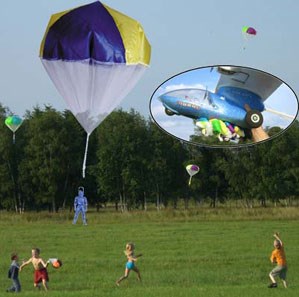 Sjove faldskærmshopp, der kan bruges enten som et kastespil eller til aflevering af fly. Det geniale med dette er, at her er der ingen tråde, der kan sammenfiltres. Øverst har du en stor tøjskærm. I stedet for at træde ned til faldskærmen, er der et fint net.