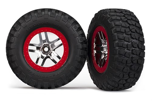 Tires & wheels, assembled, glued (S1 ultra-soft, off-road racing compound) (SCT Split-Spoke chrome, red beadlock style wheels, BFGoodrich® Mud-Terrain? T/A® KM2 tires, foam inserts) (2) (4WD f/r, 2WD rear)