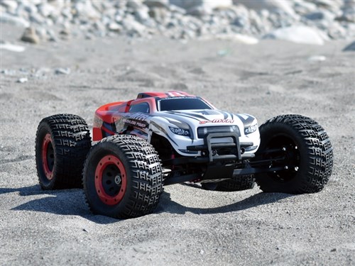 Kraftig 1/8 4WD elektro-monstertruck med børsteløst oppsett. Bilen leveres RTR med ferdig montert elektronikk og det følger med rattradio på 2.4GHz. Bilen er bygget opp på en spesiell måte der innmaten i bilen er kapslet inn for å beskytte mot snø, vann og skitt. Man har full tilgang til batteribytte uten å ta av karosseriet, og med store batteribokser er det gjordt klart for timevis med heftig kjøring!