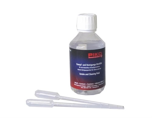 Dampdestillat / røgolie og rengøringspose. Passer til alle dampgeneratorer og fungerer også godt som en rengøringspose på skinner og lokomotiver. Leveres med to pipetter til let påfyldning / påføring.