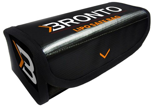 Sikkerhedspose til opladning af LiPo. Denne taske anbefales til opladning af LiPo. I tilfælde af brand eller høj varme generation vil dette begrænse skader og spredning. Du bør stadig følge almindelige sikkerhedsproblemer, når du beskæftiger dig med LiPo, og overveje dette som en ekstra sikkerhed. Når du oplader, sættes batteriet i posen, som lukker godt med en solid velcro. Ledningerne kommer ud gennem en lille åbning på siderne af velcroen.