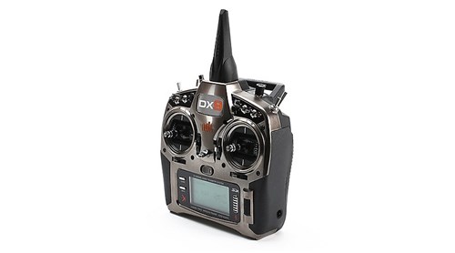 Spektrum DX9 leveres her med 2S 2000mAh LiIon senderbatteri, strømadapter for lading, 128mb minnekort og nakkestropp. Mottaker følger ikke med. Radioen er meget avansert og har stemmevarsling så man kan programmere den til å gi beskjed om utført valg, når man eksempelvis switcher fra en flightmode til en annen. Dette er 2015-versjon som kun har DSMX-støtte.