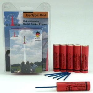 En pakke med seks raketmotorer og seks stænger til antændelse. Motorerne kan også antændes med elektroniske tænder. Motorerne er designet til brug i modelraketter.