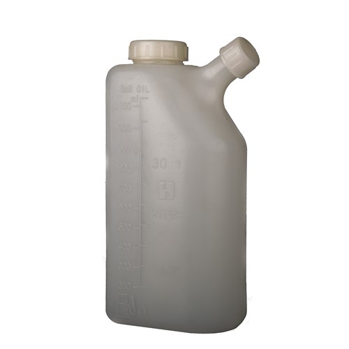 Bland og fyld flasken til benzin. Meget praktisk størrelse. Med både en stor åbning til praktisk påfyldning, en mindre tud for nem påfyldning af din model.