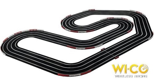 Professional 4-lanes track with 2 and 4 lanes alternative designs. With Kit WiCo, say bye to wires and chose your place anywhere around the circuit and drive without limits. Cars not included. WiCo system 2,4Ghz technology Both directions Wireless Slot Racing