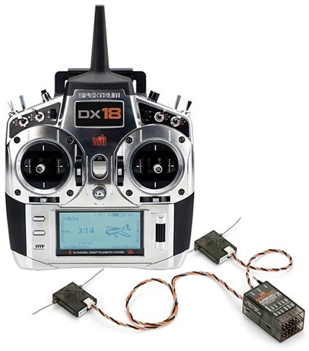 Avansert DSMX-sender til fly, seilfly og helikopter fra Spektrum. Leveres med AR9020-mottaker med 2 satelitter, 2S LiPo 2600mAh mottakerbatteri, nakkestropp, 256mb minnekort og vegglader for senderbatteriet. Senderen har hele 18 kanaler og mange programmeringsmuligheter, for mer info: Se nettsiden til produsenten.