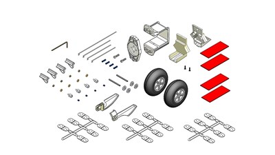 ELAPOR® model kit with all moulded foam components, linkage hardware, motor bulkhead with reinforced motor bulkhead support, CFRP undercarriage legs with wheels, CFRP spars, plotted decal sheet and comprehensive instructions.