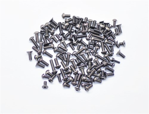 Skruesett med 126 skruer i grå aluminium, ser bra ut og veier lite.