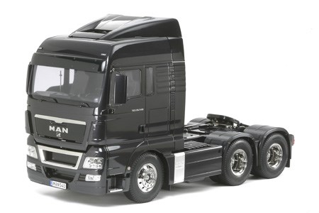 The latest addition to Tamiyas 1/14 scale R/C Tractor Truck series is the MAN TGX 26.540 6x4 XLX. This impressive truck, which made its debut at the 2007 European Transport Road Show in Amsterdam, was the winner of the 2008 Truck of the Year award. It features two rear axles which assist in the carrying of heavy loads over long distances. It is powered by an in-line 6 cylinder 12.4 liter turbocharged diesel engine which meets the stringent Euro 5 emissions standards to make it more environmentally friendly.