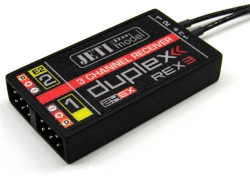 Jeti Rex3, en satellitmodtager, der er velegnet til de fleste helikoptere, fly og droner. Denne model vil være fremragende til brug i både flyvefri helikoptere og 250 racere, der understøtter SrXl eller PPM-protokol. Rex3 vil også være et meget godt valg i større modeller ved hjælp af en Jeti Central Box.