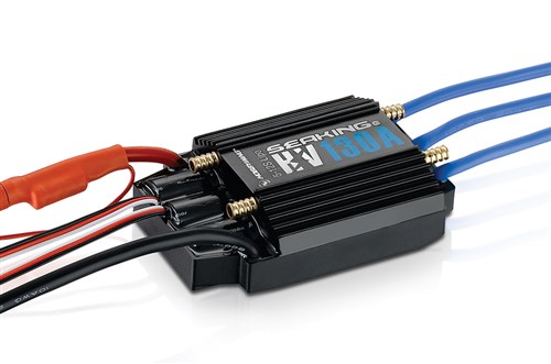 HV regulator til båd! Naturligvis 100% vandtæt og til 5-12S lipo. Kan programmeres med radio- eller LED-programmeringskort. Leveres uden kontakter.