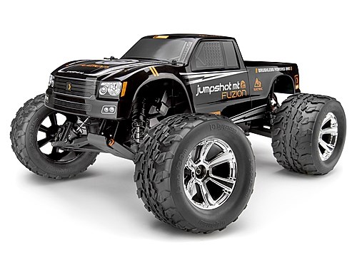 HPI Jumpshot Monster Truck Fuzion 2WD leveres komplet med 2,4 GHz radio, modtager, børsteløs motor, regulator, servo, batterier og oplader. Bilen er fuldt bygget, hvilket betyder, at du kun skal oplade batteriet, før du er klar til at køre. Denne model adskiller sig fra den almindelige Jumtshot MT, idet den har en børsteløs motor, der giver højere hastighed og længere køretid.