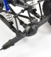 Under the semi-scale tubular roll cage, body panels and cockpit are some new and established features. Blue anodised oil filled aluminium shock absorbers handle the corners. The front suspension assembly is the same as FTX stablemates the Carnage and Bugsta trucks with fully adjustable settings, universal driveshafts, turnbuckles and a heavy-duty metal geared differential. Moving back, the moulded chassis supports the centrally positioned sealed shaft drivetrain, steering servo, motor and receiver box.