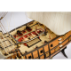 Delene består af laserskæret træ i forskellige kvalitetsmaterialer, bomuldsnormer og sejl og messing detaljer. Derudover indeholder sætet en bonus med en metalpladekande og fem skalaer for et skib.