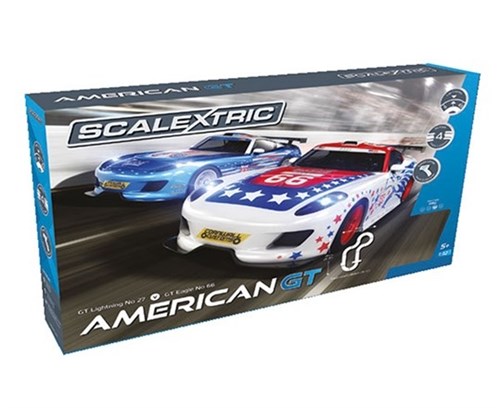 En perfekt introduktionspakke til 1:32 skala bilbaner. De amerikanske GT-biler er solide og kan modstå en smule slag. Sættet består af nok dele til at bygge fire forskellige spor. Derudover indeholder sætet en rund tæller, der gør konkurrencen endnu mere sjov.