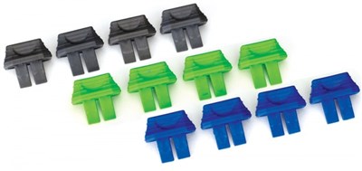 Bitdesignede kropsklemmer i skala 1/10 fås i forskellige farver, her i grønt. Klipsene er bøjet i den ene ende, så de er enkle og tændes / slukkes. Leveres 8 stk i pakken, hvor 4 stk er bøjet til venstre og 4 stk til højre, dette sikrer den bedste pasform til din krop.