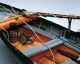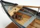 Traditional clinker-built whaleboat launch, used in New Bedford up to 1860.Sturdy and light, with similar bow and stern, the whaleboat launch carried a crew of six and a wide range of accessories for hunting and navigation. A whaleboat launch could be dragged by a harpooned whale for many miles before the whale tired, and sometimes it would take days to sail back to the mothership, so the launch was always well-stocked with drinking water, food and tobacco, along with mast, sails and compass.