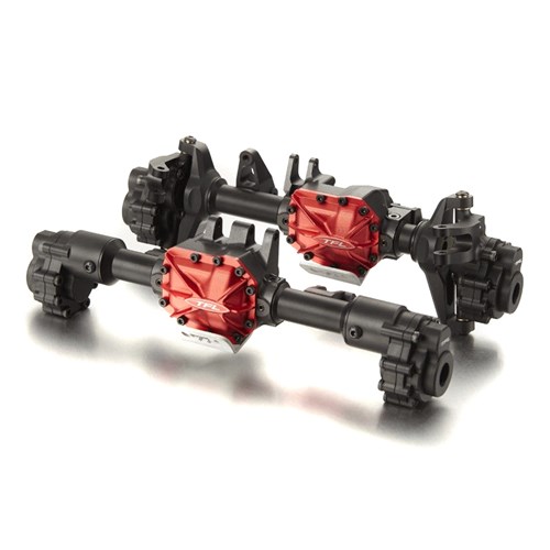 Absolut rå CNC fræsesæt til både for- og bagaksler på Traxxas TRX-4. Delene ligner i sig selv et lille kunstværk og hæver standarden på din bil adskillige hak. Sættet indeholder kun de ydre hus og monteringsdele til disse. Gear, kuglelejer, cd-skaft, led er ikke inkluderet. Her bruges den oprindeligt fra bilen.