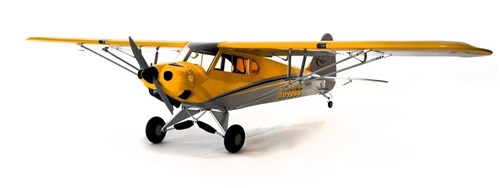 The Hangar 9® Carbon Cub 15cc ARF brings the heritage and versatility of the full-scale airplane to life with a modern all-wood model that combines classic looks with a higher performance spirit. Featuring a 90-inch wingspan, this large model delivers the experience of giant scale, yet is practical enough to fly every day. The two-piece wing allows for convenient transportation and the quick-connect struts make assembly simple. Scale detail like cockpit doors, interior features, landing lights and a scale spinner mean that this Carbon Cub model will easily turn heads at the field. A light wing loading plus functional flaps help you perform impressive short takeoff and landings. Like the full-size, shock-absorbing landing gear take most of the bounce out of grass strips. With the optional 1/5-scale float set (sold separately), you can enjoy the same adventure-driven performance at the local lake.