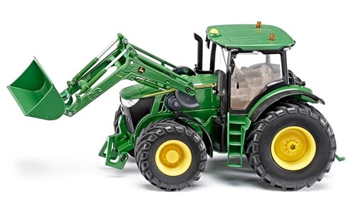 En sjeldent gjennomført, detaljert og funksjonell radiostyrt traktor. Denne John Deere 7R-modellen fra Siku har fungerende frontlaster og en rekke spennende funksjoner. I tillegg kan det kobles til diverse hengere med ytterligere funksjoner.