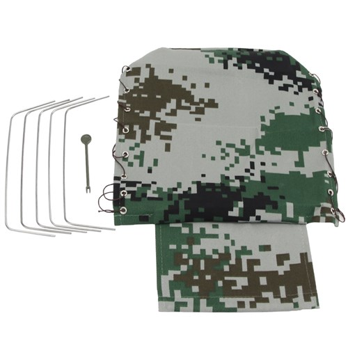 Camouflage klud, original mulighed for WPL 1:16 lastbil. Kan også bruges kreativt ved tilpasning til at skabe baldakin/trækeffekt på andre køretøjer i 1:10, 1:24 osv.