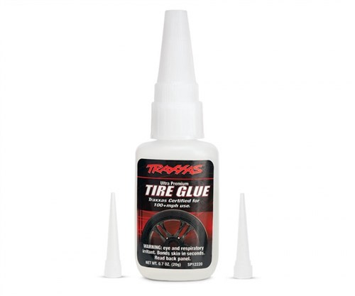 Only one tire glue is certified for use with the 100+mph XO-1: Traxxas Ultra Premium Tire Glue. The XO-1 relies on a high-strength tire bond to withstand incredible centrifugal forces at speeds in excess of 100mph. No other glue endures such high loads, which makes Traxxas Ultra Premium Tire Glue the ultimate adhesive for any tire and rim combination (and any other application that requires a high-strength bond).