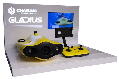Gladius butikskærm med displaydisplay. Pakken indeholder Dummy-modellen på Gladius Mini.
